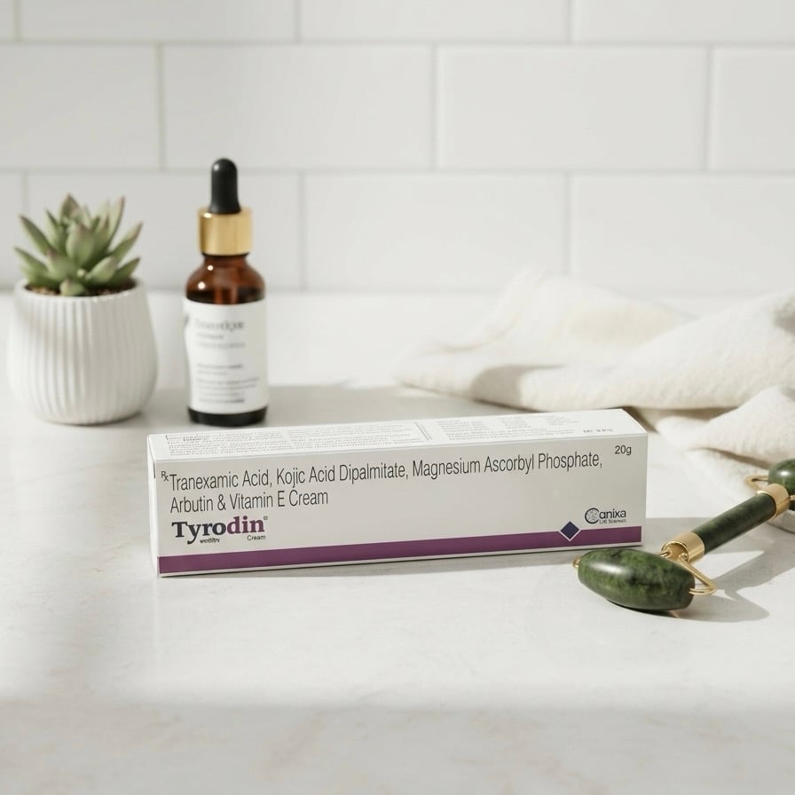 Tranexamic Acid, Kojic Acid, Magnesium Ascorbyl Phosphate, and Vitamin E work synergistically to target hyperpigmentation and enhance overall skin radiance. Tranexamic acid helps reduce melanin production by inhibiting pathways that trigger pigmentation, making it effective for melasma and stubborn dark spots. Kojic acid further supports skin brightening by blocking tyrosinase activity, while magnesium ascorbyl phosphate (a stable form of vitamin C) boosts collagen production and improves skin tone. Vitamin E provides antioxidant protection, helping to nourish the skin and defend against environmental damage. Together, these ingredients promote a clearer, more even, and luminous complexion with consistent use.
